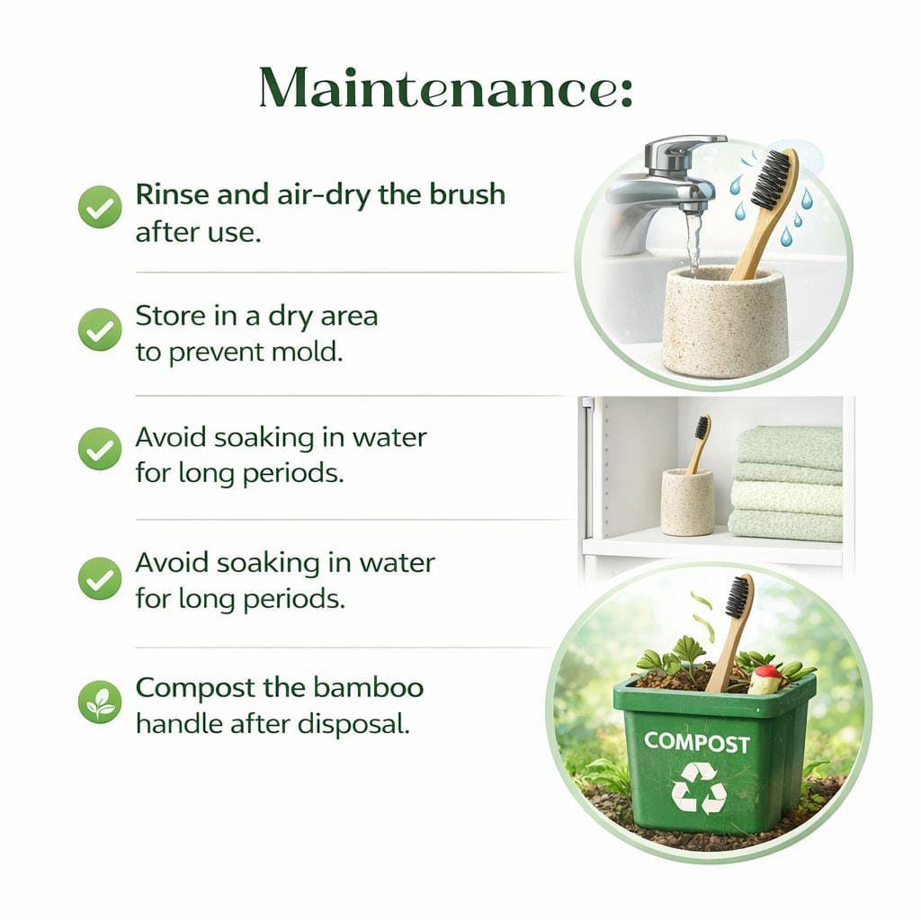 Our bamboo toothbrush with charcoal-infused bristles is 100% natural and plastic-free. It’s eco-friendly, gentle on teeth, and a step toward sustainable oral care for everyone.